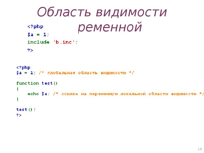 Этот скрипт не будет выводить никакого вывода, потому что оператор эха ссылается на локальную версию переменной $a, и она не была присвоено значение в пределах этой области. Вы можете заметить, что это немного отличается от языка C в том, что глобальные переменные в C автоматически доступны для функций, если специально переопределяется локальным определением. Это может вызвать некоторые проблемы в что люди могут непреднамеренно изменить глобальную переменную. В PHP глобальные переменные должны быть объявлены глобальными внутри функции, если они будут использоваться в этой функции. Пример: