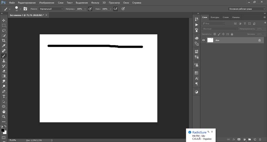 Если Вы не знакомы с основными методами создания сплошной линии в Photoshop, Вы можете посмотреть мой урок по рисованию линии, а в этом материале мы рассмотрим, как преобразовать сплошную линию в пунктирную.![]()