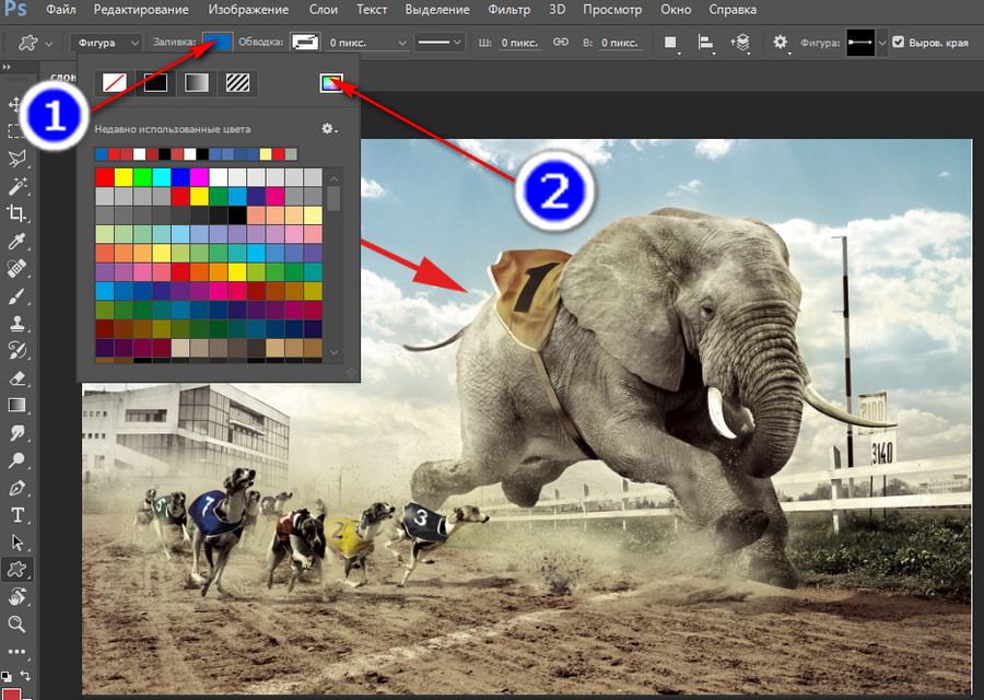 - Другой способ — использовать инструмент «Градиент» и создать градиент с цветом, контрастирующим со стрелкой.