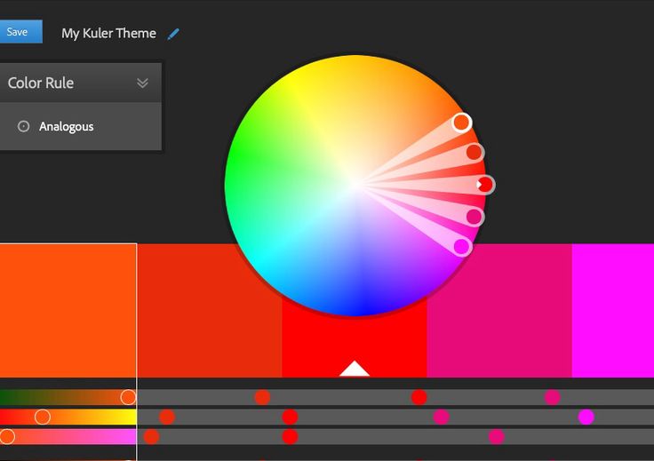 В браузере перейдите к Цветовое онлайн-колесо Adobe Color . Вы можете поэкспериментировать с колесом, настраивая Color Rule слева на различные настройки, например Analogous…