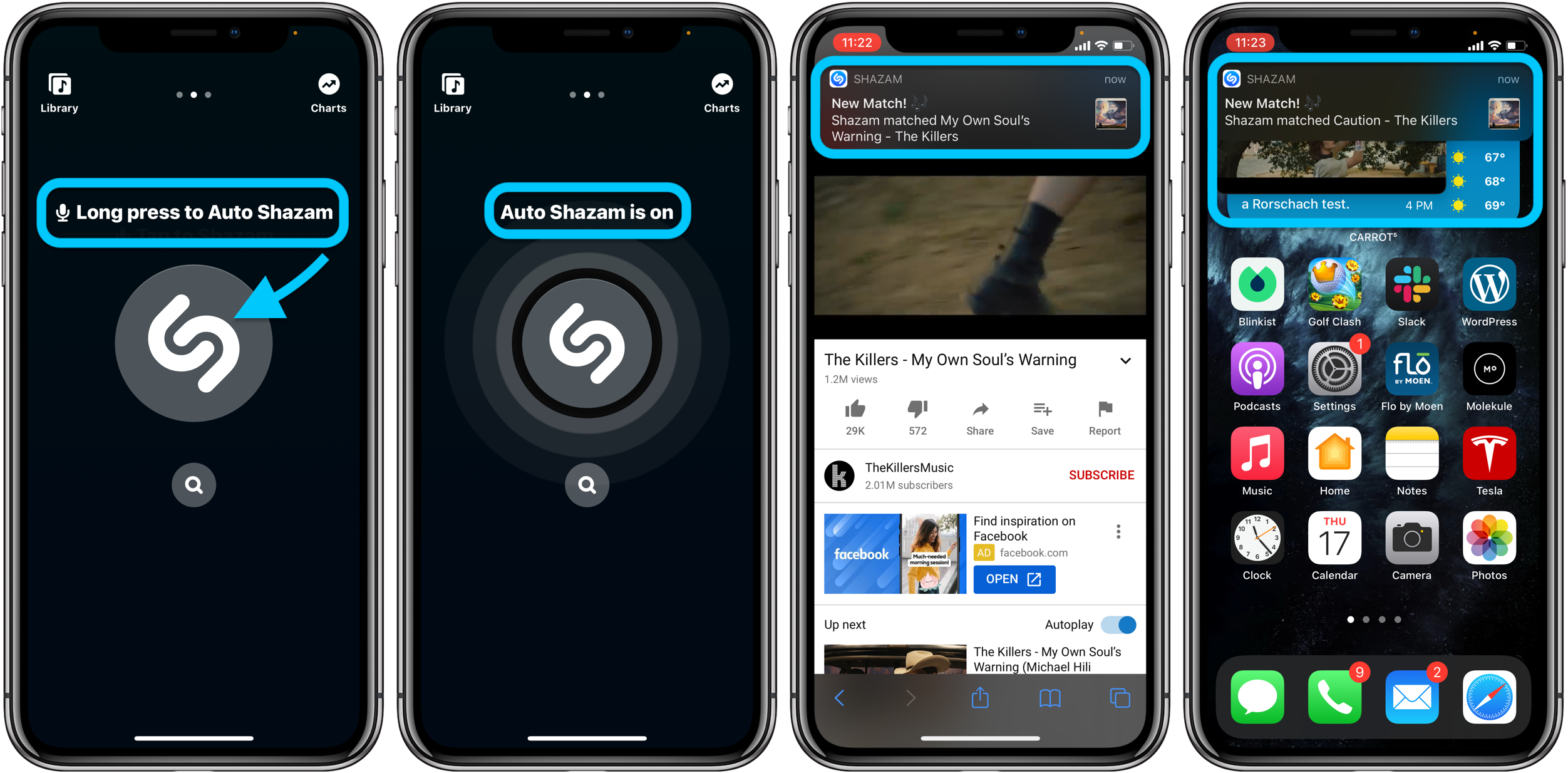 В панели управления появится иконка Shazam и функцию можно включить свайпом сверху (на моделях с Face ID) или снизу (на телефонах с Touch ID).