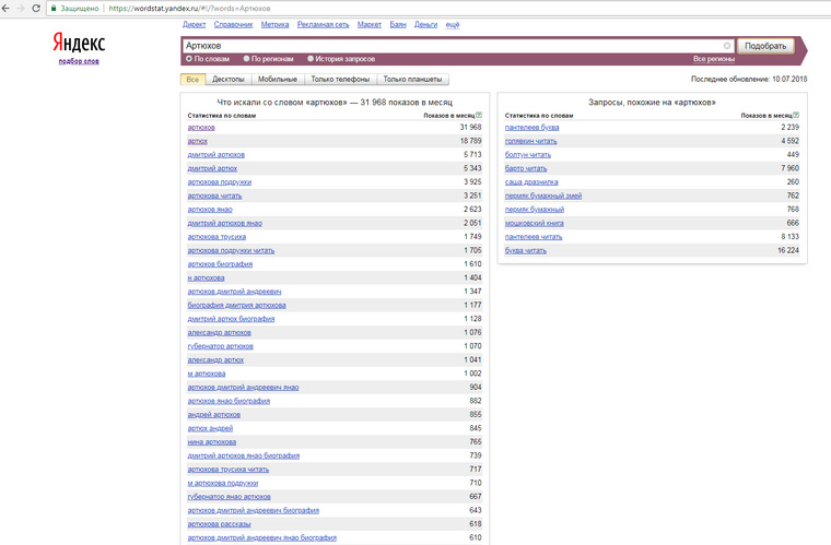 В таблице можно кликать на заголовки разных столбцов, чтобы анализировать список запросов по разным параметрам.