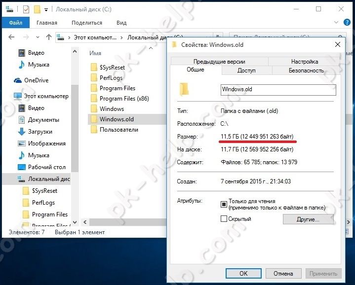 В окне свойств Windows.old будет указан текущий размер папки. Это будет зависеть от размера предыдущей установки, но ожидайте, что эта папка будет использовать 15 ГБ или более места для хранения.