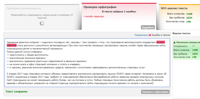Несколько примеров обнаружения ошибок в текстах в Premium версии аккаунта: