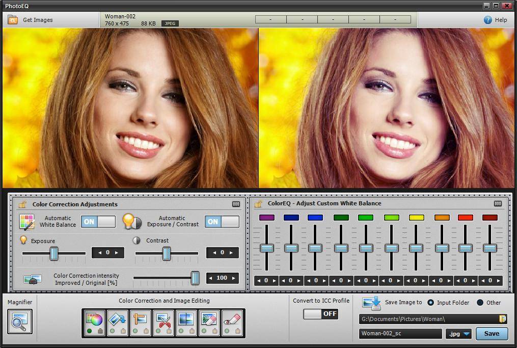 Этот инструмент быстрой цветокоррекции позволяет легко настроить яркость и контрастность.