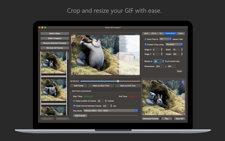 ΡΠ»Π΅ΠΌΠ΅Π½ΡΠΎΠ² Π² Π²Π°ΡΠΈ GIF. ΠΠ»Π°Π³ΠΎΠ΄Π°ΡΡ Π»Π°ΠΊΠΎΠ½ΠΈΡΠ½ΠΎΠΌΡ ΠΏΠΎΠ»ΡΠ·ΠΎΠ²Π°ΡΠ΅Π»ΡΡΠΊΠΎΠΌΡ ΠΈΠ½ΡΠ΅ΡΡΠ΅ΠΉΡΡ ΠΎΠ½ ΠΏΠΎΠΌΠΎΠΆΠ΅Ρ Π²Π°ΠΌ Π·Π°Π²Π΅ΡΡΠΈΡΡ ΠΏΡΠΎΡΠ΅ΡΡ ΡΠ΅Π΄Π°ΠΊΡΠΈΡΠΎΠ²Π°Π½ΠΈΡ GIF Π·Π° ΡΡΠΈΡΠ°Π½Π½ΡΠ΅ ΠΌΠΈΠ½ΡΡΡ.