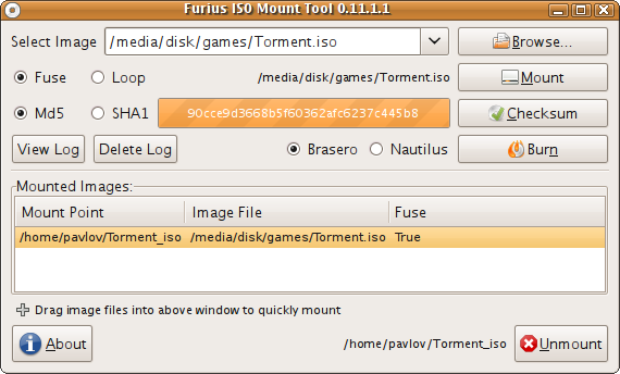 Хотя Virtual CloneDrive имеет небольшой размер, он поддерживает несколько форматов изображений, таких как IMG, BIN, CUE, UDF, UDF и т. Д. В Virtual CloneDrive мне очень нравится то, что он может автоматически открывать последний файл изображения. Кроме того, он также хранит историю всех ваших установок ISO, поэтому вы можете снова смонтировать его одним щелчком мыши.