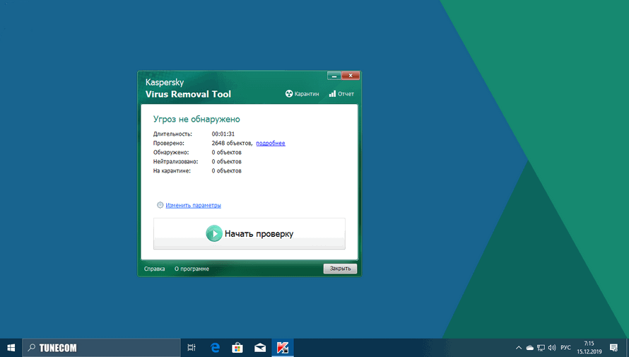 Загрузка и установка сканера Kaspersky Virus Removal Tool