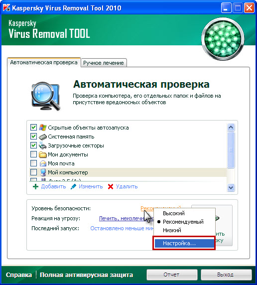 В версии 7.1 можно выполнять три типа антивирусных проверок: