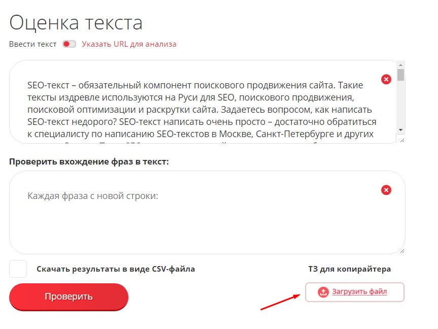 Позволяет смотреть, какие ключи используют конкуренты, указывает частотность слов в тексте.