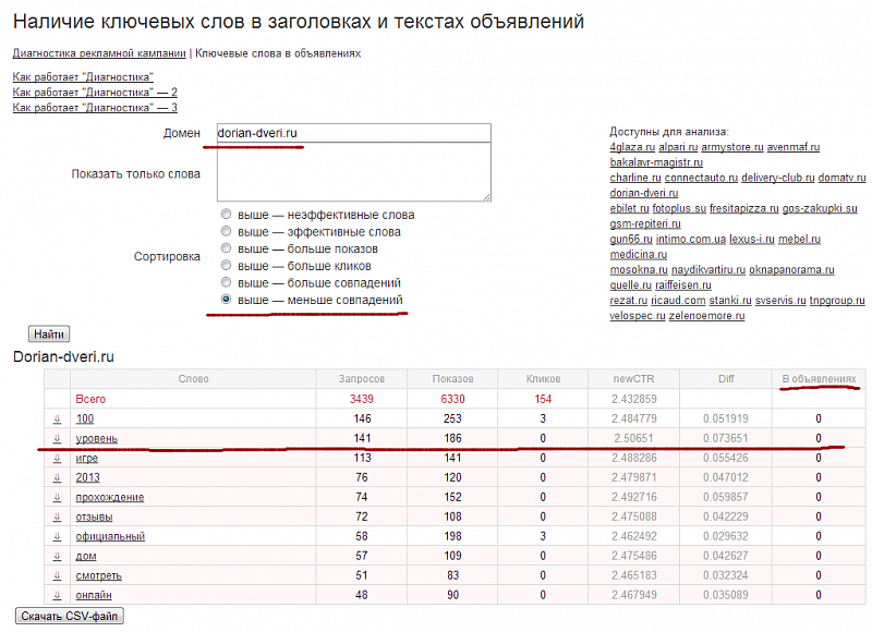Для молодых сайтов рекомендуется уделять внимание оценке данного показателя при анализе поисковых фраз составлении семантического ядра.