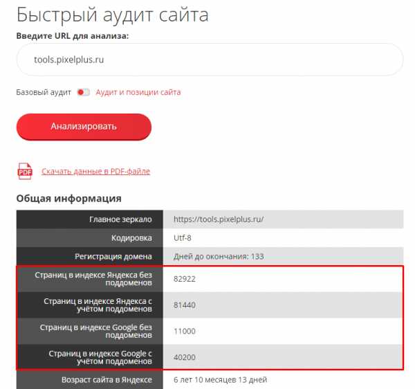 Бесплатные сервисы позволяют быстро узнать количество проиндексированных «Яндексом» и Google страниц. Есть, к примеру, очень удобный инструмент от XSEO.in и SEOGadget (можно проверять до 30 сайтов одновременно).