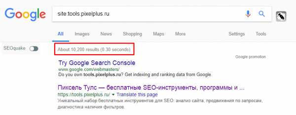 С помощью поисковых операторов можно уточнить те или иные результаты поиска. Так, с помощью оператора «site:» можно узнать о примерном количестве страниц, которые находятся в индексе.