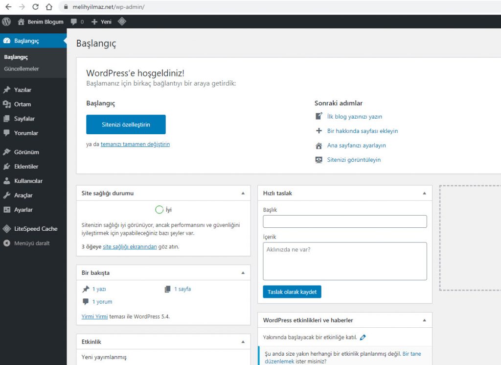 После того, как вы сделали первые шаги для изменения сайта (или хотя бы установили движок WordPress), просмотрите изменения. В админпанели есть пункт «Просмотр сайта». Чтобы научиться пользоваться движком, рекомендуется прежде хорошо изучить структуру сайта, обратить внимание на каждый доступный элемент в стандартной теме Вордпресс. Когда вы научитесь видеть картину в целом, пользоваться движком уже будет не так сложно.