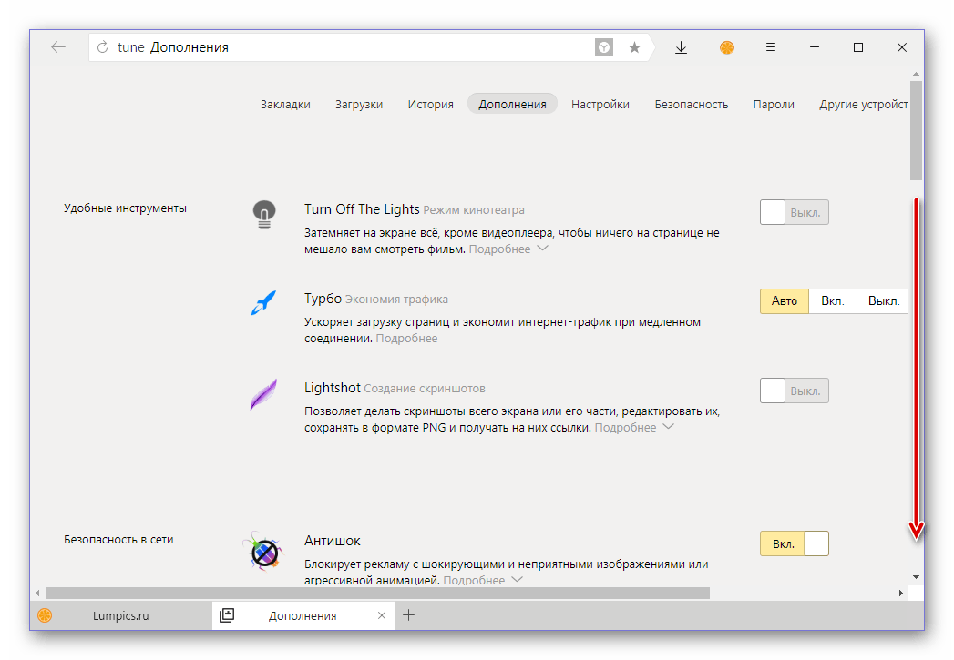 Где находятся установленные расширения в Яндекс Браузере