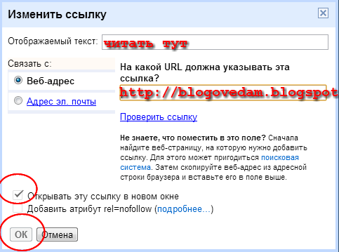 5. Выберите Открыть в новой вкладке , если хотите, чтобы ссылка открывалась в новой вкладке.