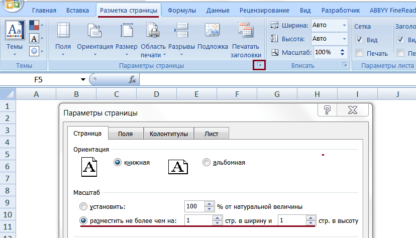 Шаг 2. Это окно вызывается любой из кнопок групп «Параметры страницы», «Вписать» или «Параметры листа»: