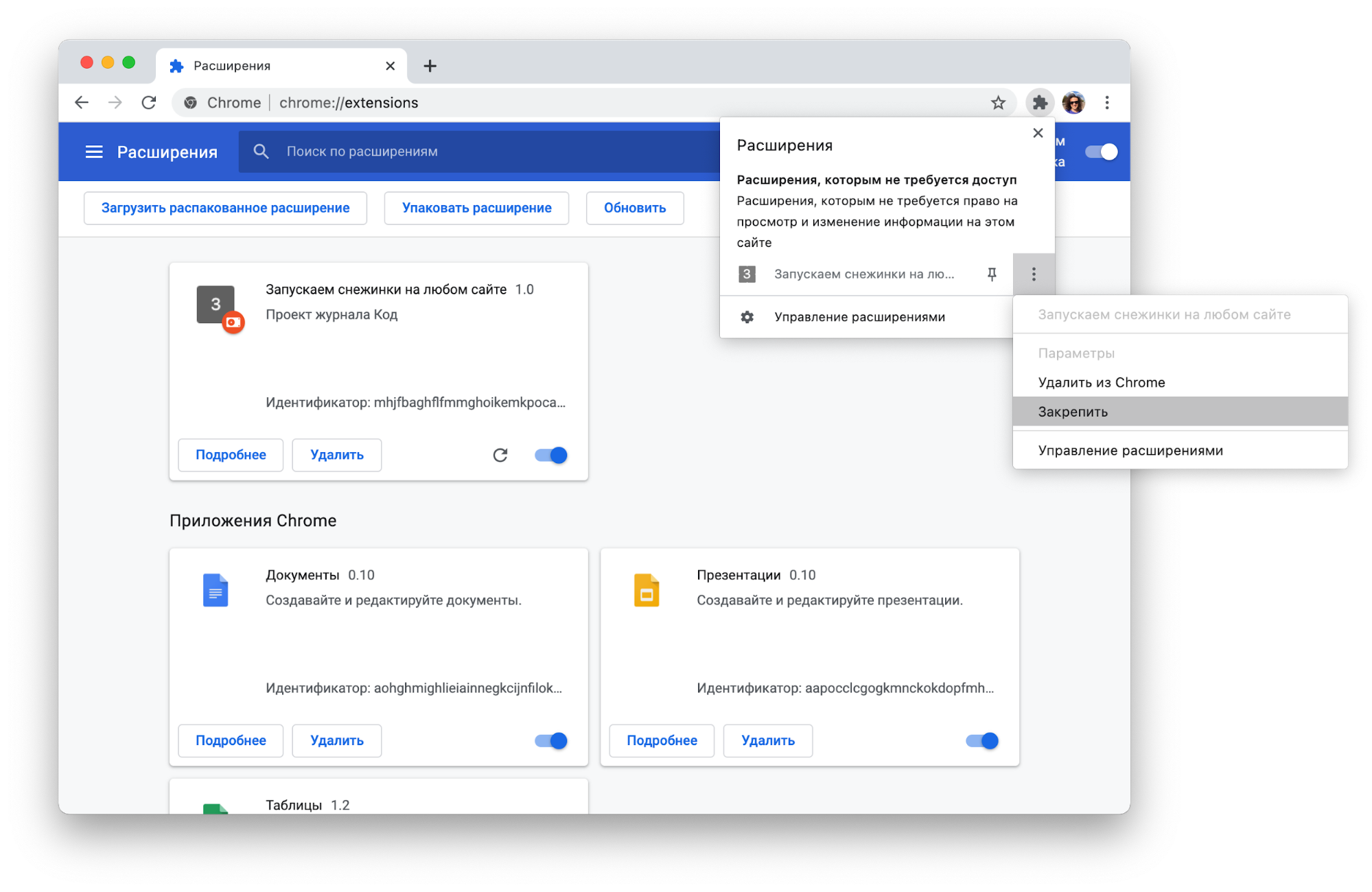 Подробнее об упаковке см. в руководстве на порталах разработчиков соответствующих расширений.