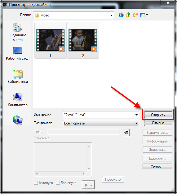 - Предварительный просмотр исходного видео и вывод в видео плеер.