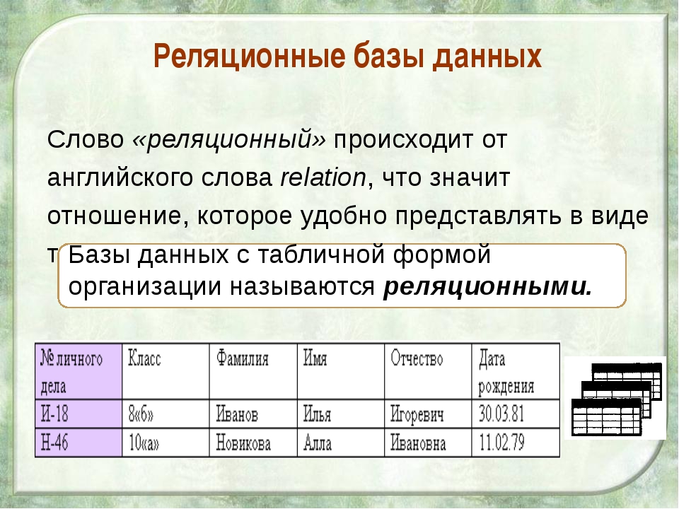 Общие понятия реляционного подхода к организации бд. Основные концепции и термины