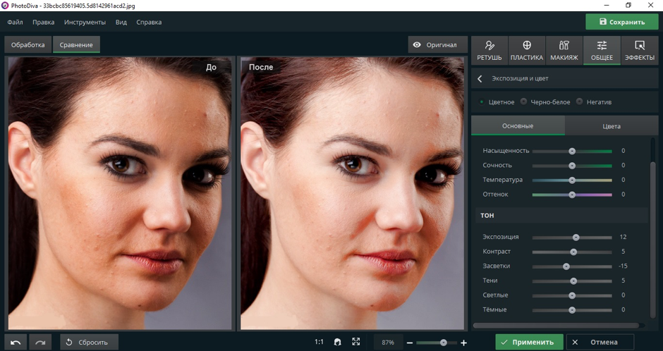 Знаете ли вы, что автоматическая онлайн-ретушь фотографий бесплатна и выполняется всего за пару кликов? На Makeup.Pho.to вы можете быстро и легко улучшить свой портрет онлайн!