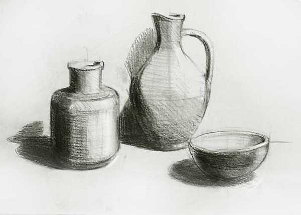 Композиция может состоять не только из геометрических фигур, а из чего угодно. Неплохой практикой считается рисование натюрморта. Во-первых, какое разнообразие форм. Идеальнее всего будет рисовать с натуры. Возьмите графин или вазу, положите перед ними немного фруктов либо овощей. Дайте полет своей фантазии. Составьте для начала композицию на самом столе. А уже после, принимайтесь к работе на листе. Во-вторых, рисование объектов более сложных полезно не только отрисовкой пластики форм, но и наложением на них теней.