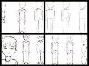 Приступив к работе над своим хобби, нужно немного учесть теории. Если Вы хотите изобразить человека, необходимо учитывать и понимать его пропорции. Не соблюдая их, рисунок получится мало реалистичным и смешным. Сперва изучите фигуру средних размеров, это даст базу, на которой можно строить пропорции в дальнейшем. Используйте голову в качестве единицы измерения для относительных размеров других частей тела. На пример, чтобы было более понятно, в среднем росте изображённого человека семь, восемь голов. У мужчины конечно, фигура отличается от женской, и также, у детей свои очертания, не схожие с взрослыми. Но это что касаемо общих пунктов, а вообще, пропорции могут не соответствовать реальности, в рисунке карандашом, важно понять настрой портретируемого, характер и выражение.