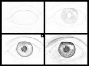 Всегда пользуйтесь вспомогательными линиями, художнику с нуля, их помощь неизбежна. Начните с простых и банальных рисунков без, всё приходит с опытом. Если Вы решили рисовать пока только лица людей, чтобы придать им наиболее конкретики, помните про часть скул, форма подбородка, морщинки. Всегда обращайте особое внимание части глаз, необходимо передать взгляд человека, его эмоции, и настроение в данный момент. Для этого нужно научиться рисовать общие очертания строения глаза: