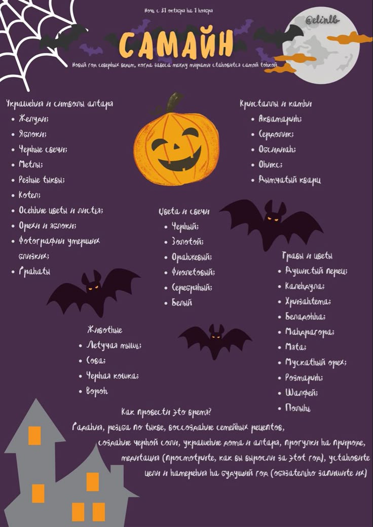 Я выделяю 4 традиции: Самайн древний, Самайн фольклорный, День всех святых и Хэллоуин.