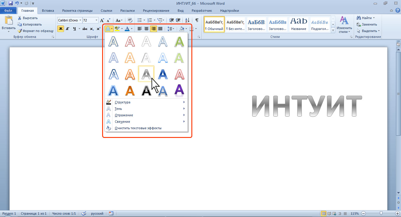 ΠΠ° Π²ΠΊΠ»Π°Π΄ΠΊΠ΅ Π‘ΡΠ΅Π΄ΡΡΠ²Π° ΡΠΈΡΠΎΠ²Π°Π½ΠΈΡ Π€ΠΎΡΠΌΠ°Ρ Π½Π°ΠΆΠΌΠΈΡΠ΅ Text Effects > Shadow , Π° Π·Π°ΡΠ΅ΠΌ Π²ΡΠ±Π΅ΡΠΈΡΠ΅ Π½ΡΠΆΠ½ΡΡ ΡΠ΅Π½Ρ.