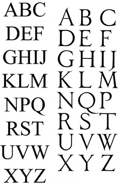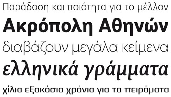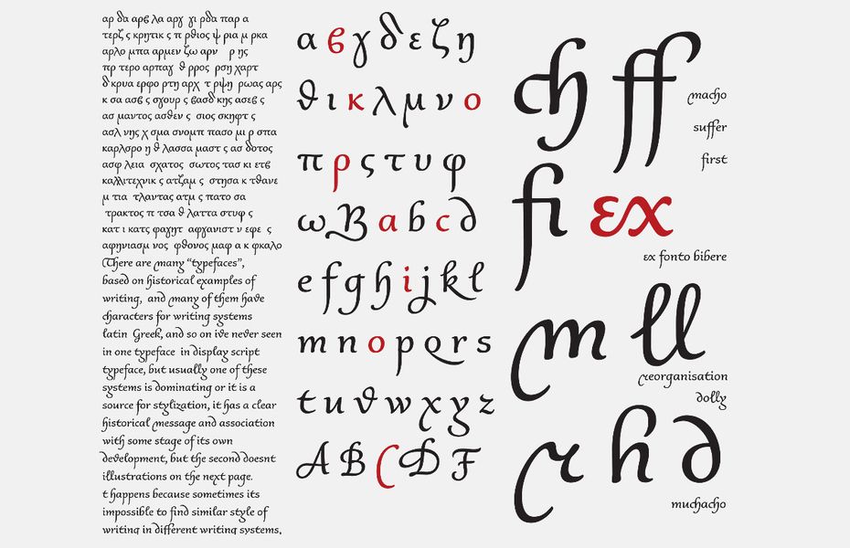 Таким образом, в отличие от большинства современных греческих шрифтов, которые сохранили свой собственный набор принципов дизайна для строчных букв (таких как размещение засечек, формы концов штрихов и правила толщины штрихов, хотя греческие заглавные буквы действительно используют латинские принципов дизайна), современные кириллические шрифты во многом аналогичны современным латинским шрифтам того же семейства шрифтов.