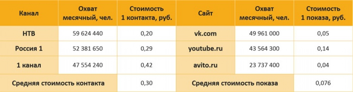 | Вид рекламы | ||||||||||