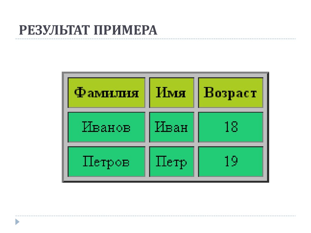 Как и в прошлой главе, напоминаю, что оформление таблицы согласно требованиям языка XHTML должно выполняться средствами CSS.