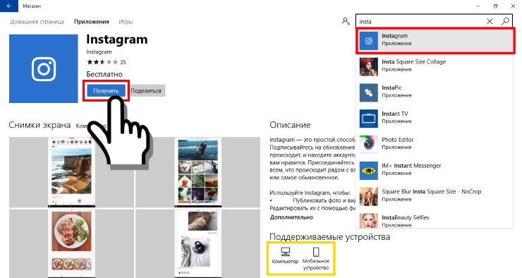 - Открыть – авторизоваться через аккаунт в Instagram*.