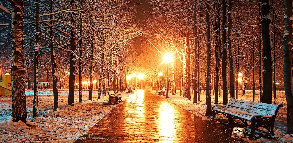 Фонари отлично подсвечивают снежинки. Яркий свет и задний план будут на контрасте, отделяя снежинки.