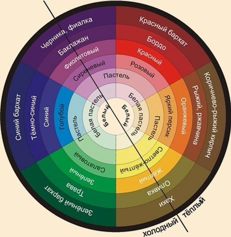 - Цветовой круг и таблица сочетания цветов в интерьере