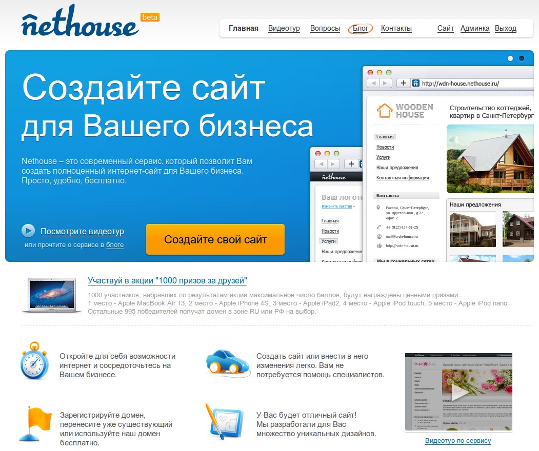 Но на всякий случай советую также почитать отзывы о других конструкторах сайтов. (здесь их очень много и все со ссылками на сайты). О продвижении сайта читай здесь.
