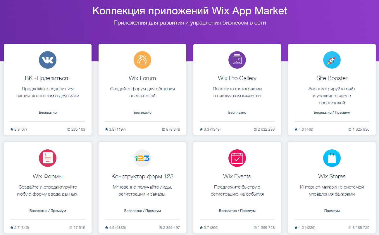 Самым большим плюсом Wix является его гибкость. В то время как некоторые другие конструкторы сайтов ограничивают дизайн и структуру для простоты, Wix упрощает добавление разделов или страниц, галерей, социальных каналов, интерактивных функций и многого другого. Существуют более конкретные инструменты для ведения блогов или разработки функционального контента, а также виджеты и приложения для встроенного кода. Важно отметить, что обширный магазин приложений предоставляет вам широкий спектр дополнительных функций для изучения как от Wix, так и от третьих сторон.
