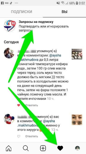 Где посмотреть запросы на подписку, отправленные из Instagram?