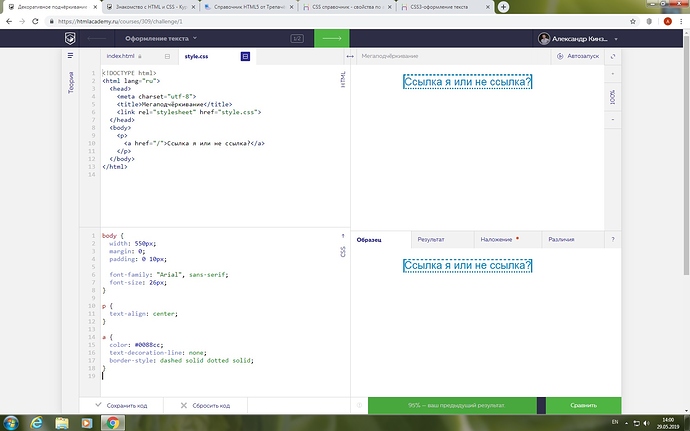 Öğesini biçimlemeden kullanıldığında altı çizgili olduğu görülür. Bu onun bir ссылка olduğunu ve diğer metinlerden ayrı görünmesinin gereği olarak sunulmuştur.Bu iyi bir görüş olsa da bu türden bir görünüm yerine daha farklı biçime elbette CSS ile getirmek mümkündür. Böyle Бир durumda alt çizgisinden kurtulmak isteyebilirsiniz. текст-декорирование Özelliğinin нет değerini kullanılarak этикетинин стандарт altı çizgisini yok edebilirsiniz.