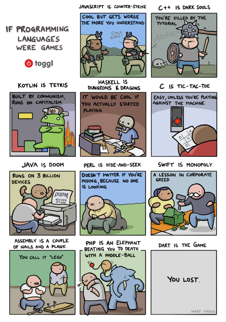 ΠΌΠΎΠ΄Π΅Π»Π΅ΠΉ . ΠΠΈΠ΄ΠΈΡΠ΅ Π»ΠΈ, ΠΊΠΎΠ³Π΄Π° Π²Ρ ΠΈΠ·ΡΡΠ°Π΅ΡΠ΅ ΡΠ²ΠΎΠΉ ΠΏΠ΅ΡΠ²ΡΠΉ ΡΠ·ΡΠΊ ΠΏΡΠΎΠ³ΡΠ°ΠΌΠΌΠΈΡΠΎΠ²Π°Π½ΠΈΡ, Π²Ρ ΡΠΌΠΎΡΡΠΈΡΠ΅ Π½Π° ΠΏΡΠΎΠ³ΡΠ°ΠΌΠΌΠΈΡΠΎΠ²Π°Π½ΠΈΠ΅ ΡΠ΅ΡΠ΅Π· ΠΏΡΠΈΠ·ΠΌΡ ΡΡΠΎΠ³ΠΎ ΡΠ·ΡΠΊΠ°. ΠΠ΅ΡΠ΅Π½Π΅ΡΠ΅ΠΌΡΡ ΠΊ Π²Π°ΡΠ΅ΠΌΡ Π²ΡΠΎΡΠΎΠΌΡ ΡΠ·ΡΠΊΡ, ΠΈ ΡΡΠΎ ΠΊΠ°ΠΆΠ΅ΡΡΡ ΡΠ»ΠΎΠΆΠ½ΡΠΌ, Π²Π°ΠΌ Π½ΡΠΆΠ½ΠΎ Π·Π°Π½ΠΎΠ²ΠΎ Π²ΡΡΡΠΈΡΡ ΡΠΈΠ½ΡΠ°ΠΊΡΠΈΡ, Π° ΡΡΠΎΡ Π½ΠΎΠ²ΡΠΉ ΡΠ·ΡΠΊ Π΄Π΅Π»Π°Π΅Ρ Π²Π΅ΡΠΈ ΠΏΠΎ-Π΄ΡΡΠ³ΠΎΠΌΡ. ΠΡΠΏΠΎΠ»ΡΠ·ΡΡ Π±ΠΎΠ»ΡΡΠ΅ ΡΠ·ΡΠΊΠΎΠ² ΠΏΡΠΎΠ³ΡΠ°ΠΌΠΌΠΈΡΠΎΠ²Π°Π½ΠΈΡ, Π²Ρ ΠΏΠΎΠ½ΠΈΠΌΠ°Π΅ΡΠ΅, ΡΡΠΎ ΡΠ·ΡΠΊΠΈ ΠΈΠΌΠ΅ΡΡ ΠΎΠ±ΡΠΈΠ΅ ΡΠ΅ΠΌΡ. Π Java ΠΈ Python Π΅ΡΡΡ ΠΎΠ±ΡΠ΅ΠΊΡΡ, Python ΠΈ JavaScript Π½Π΅ ΡΡΠ΅Π±ΡΡΡ Π½Π°ΠΏΠΈΡΠ°Π½ΠΈΡ ΡΠΈΠΏΠΎΠ², ΡΡΠΎΡ ΡΠΏΠΈΡΠΎΠΊ ΠΌΠΎΠΆΠ½ΠΎ ΠΏΡΠΎΠ΄ΠΎΠ»ΠΆΠΈΡΡ.