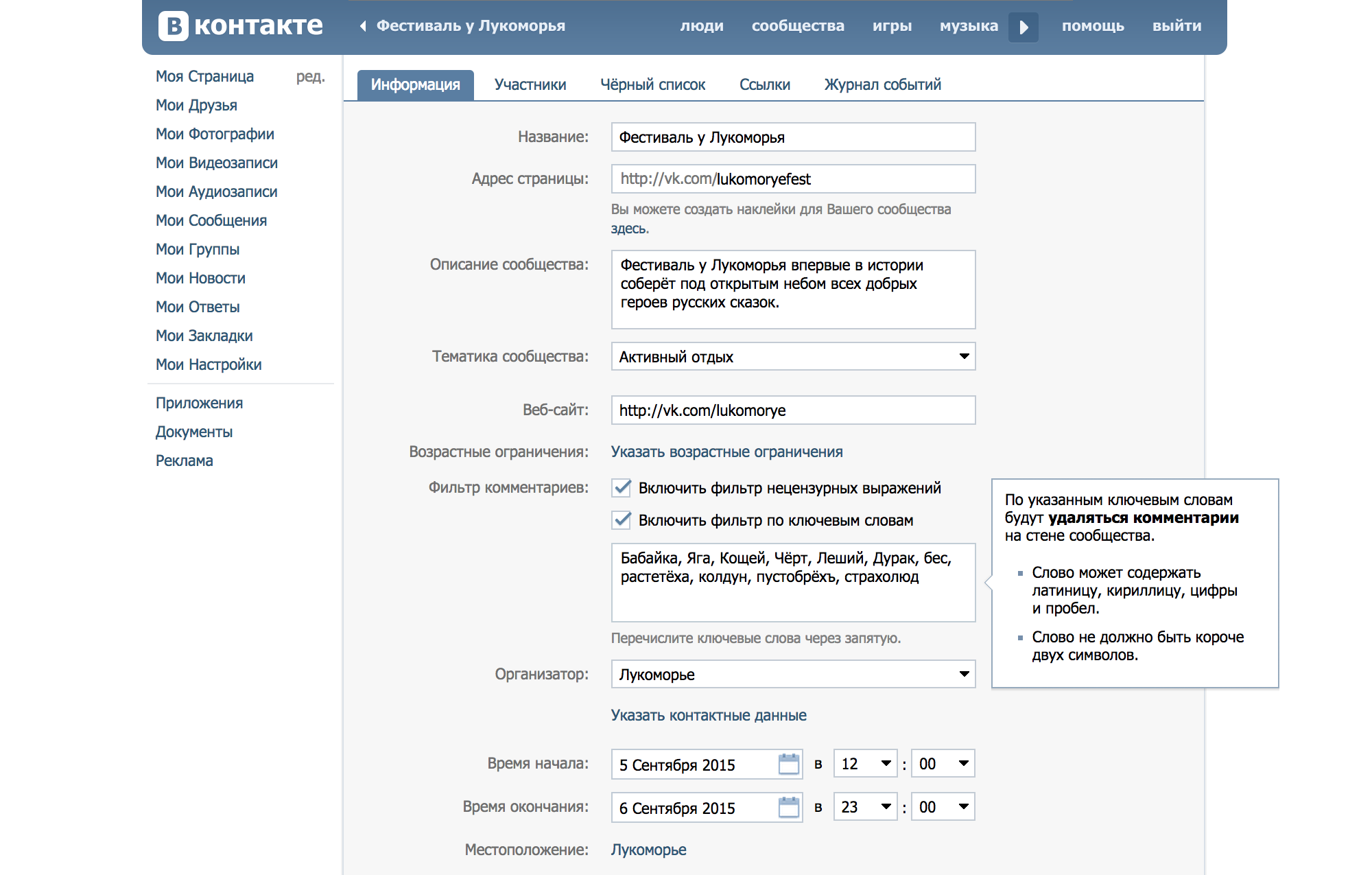 С типом сообщества лучше определиться сразу: поменять его позже смогут только владельцы группы или страницы. Сменить его у мероприятия невозможно.