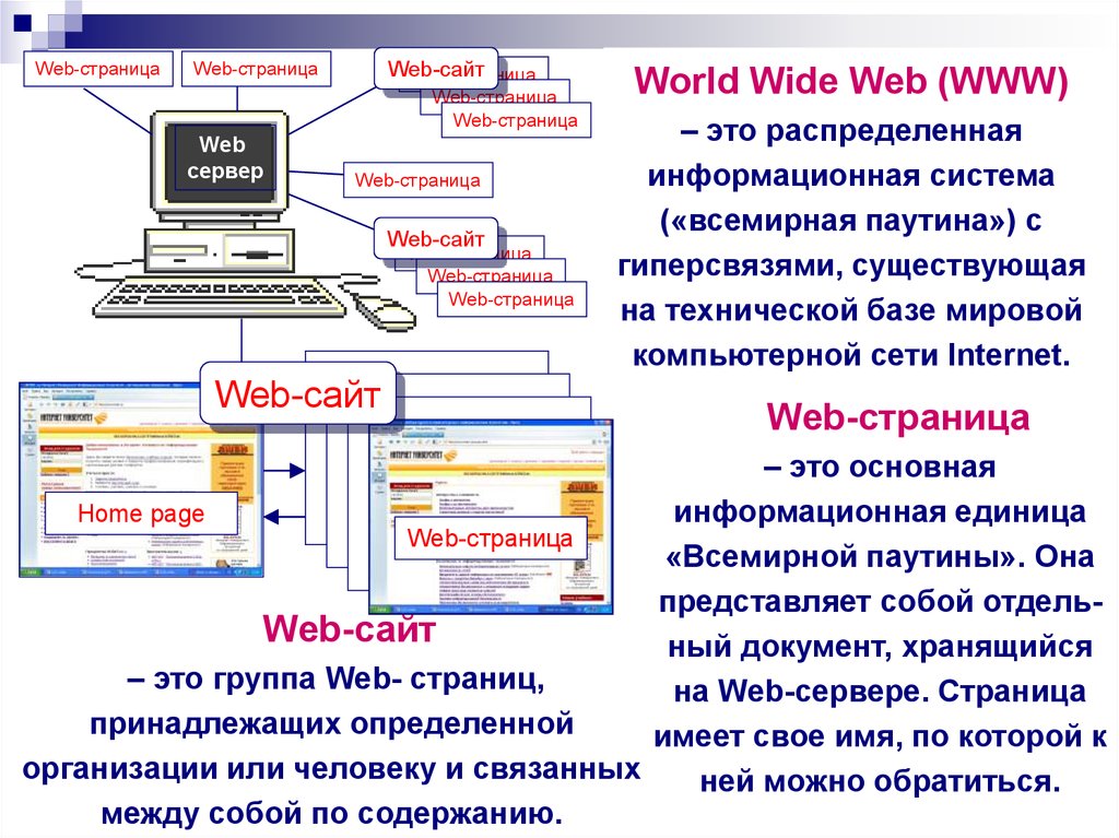 взаимосвязанных с помощью гиперссылок. Web-страницы, входящие в сайт,