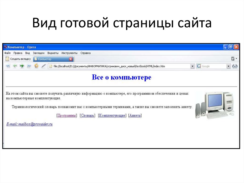 Конспект урока по информатике на тему «Создание web-сайта»