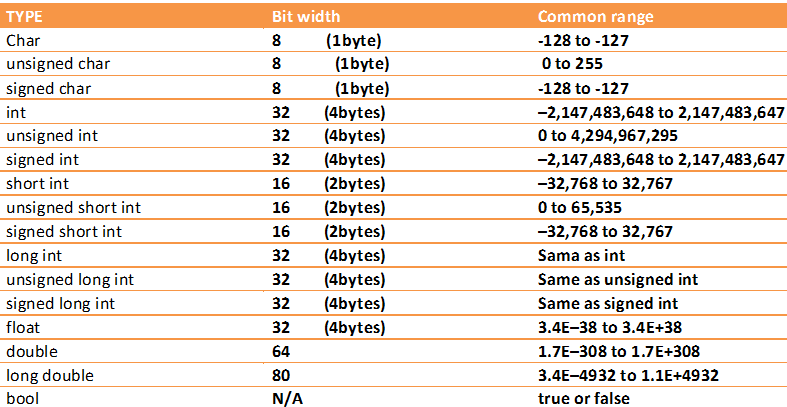 std::cout << "bool: " << sizeof(bool) << "\n"; // 1