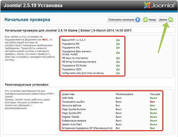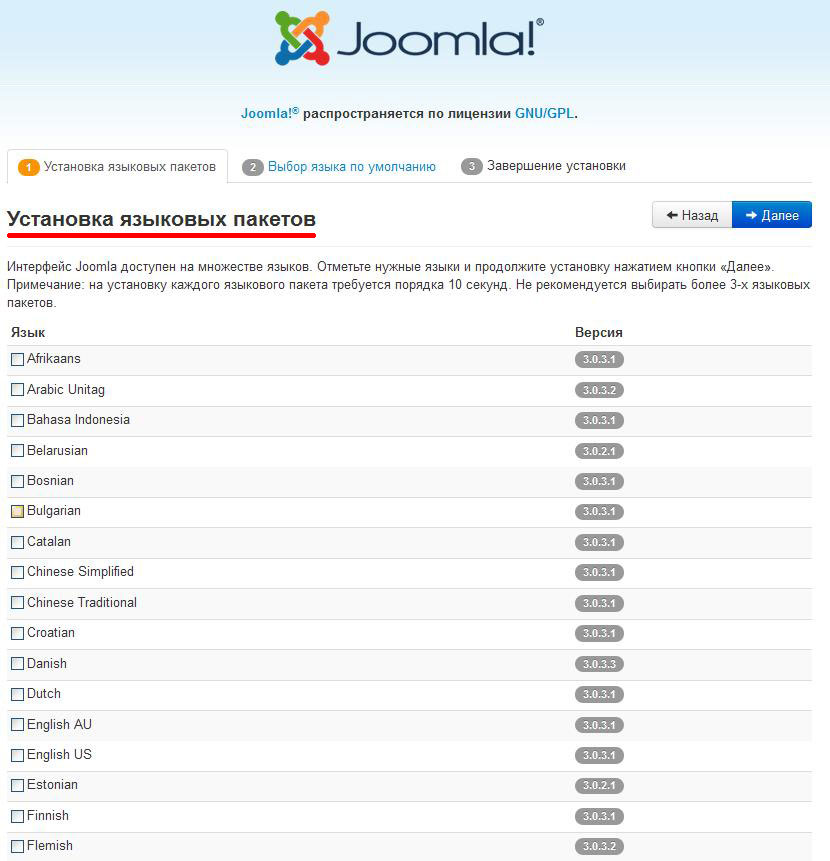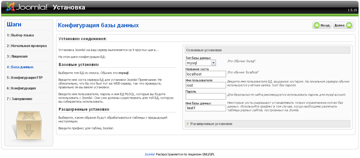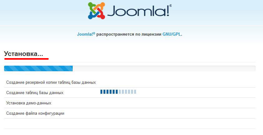 Процесс установки Joomla можно условно разделить на 4 этапа.