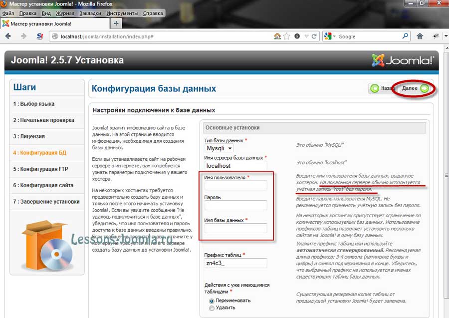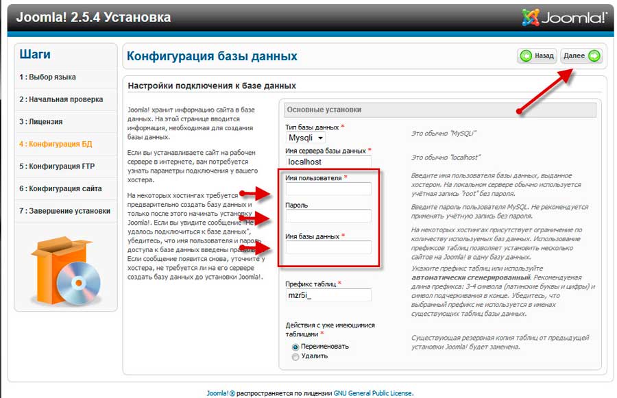 Эти данные необходимо запомнить. они понадобятся при установке Joomla.