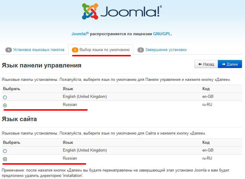 - Для завершения установки CMS перейдите к процедуре установки Joomla в браузере.