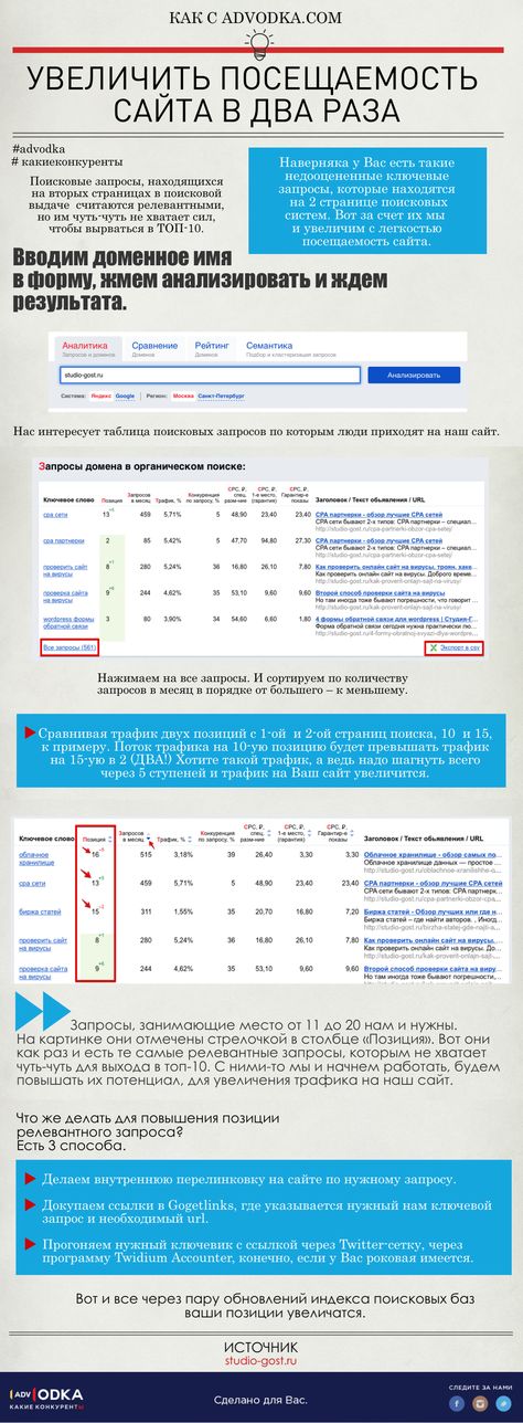 Анализируйте какой контент получает больше трафика, и по каким ключевым фразам вы можете продвигать свой сайт.