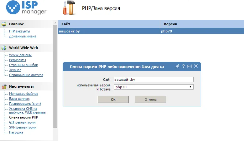 В нашем случае мы для примера ввели домен «korablpurga.ru».
